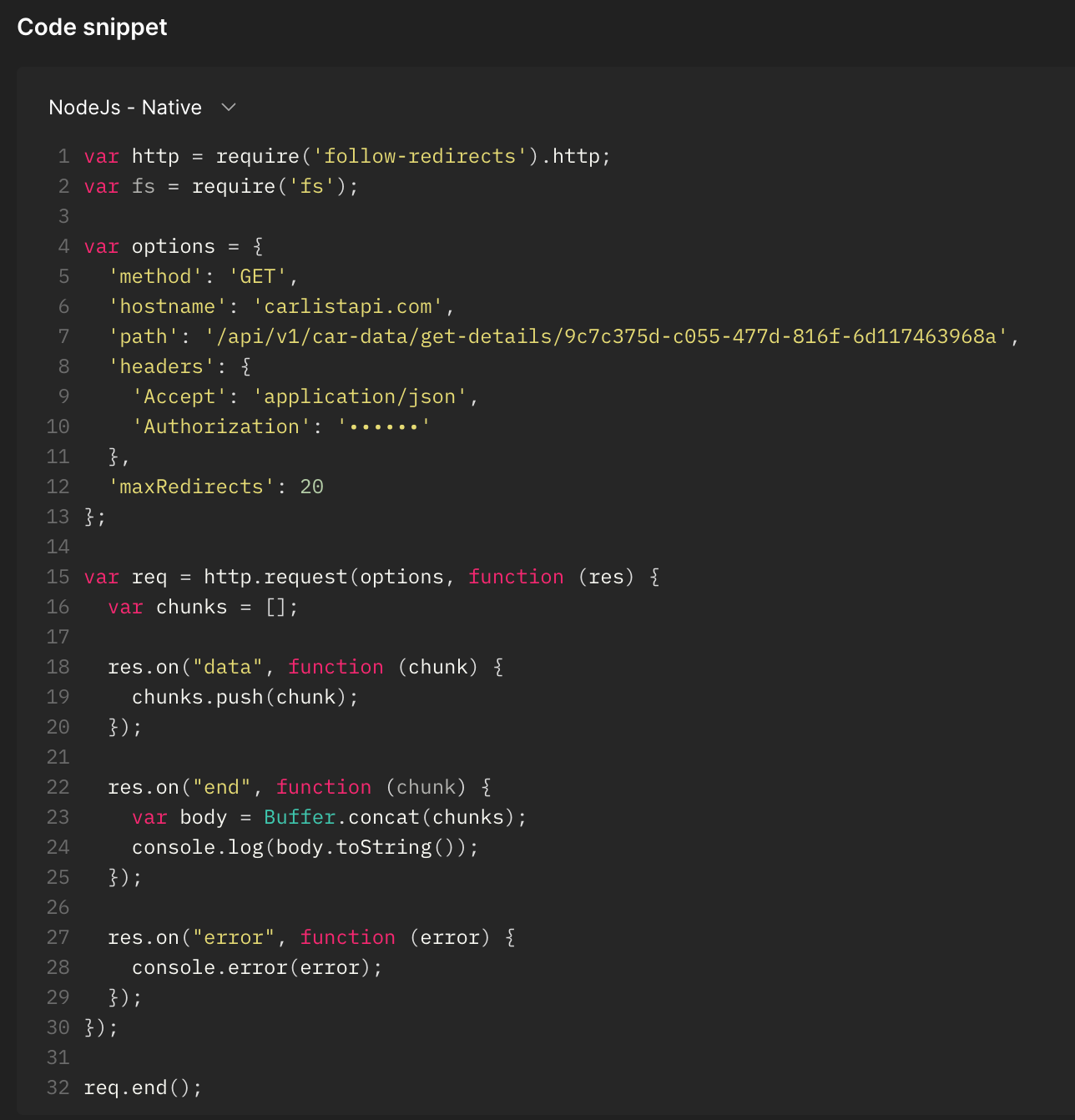 Whether you're using PHP, jQuery, Java, C, NodeJs, Python, Ruby or another programming language, our API documentation will help give you a jump start.
